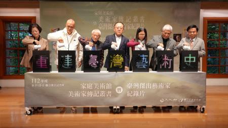 文化部指導、國立臺灣美術館策劃、藝術家出版社及閣林文創公司執行的112年度「家庭美術館—美術家傳記叢書」及「臺灣傑出藝術家紀錄片」新書‧影音聯合發表記者會,4日在國立臺灣博物館小白宮展演廳揭開序幕。文化部長史哲、國立臺灣美術館長陳貺怡;藝術家韓湘寧、江明賢、蘇憲法、陳景容、李小鏡,以及藝術家倪再沁、黃鷗波、陳道明、潘元石、陳幸婉、李俊賢、黃清埕、林智信的家屬們皆出席共襄盛舉;學者李既鳴、黃冬富、盛鎧、潘襎、白適銘、蕭瓊瑞、江敏甄、李思賢;審查委員邱琳婷、林育淳、李欽賢、吳繼濤、王偉光、林保堯、賴明珠、黃玉珊等共同見證臺灣美術家、藝術家精采的生命歷程。