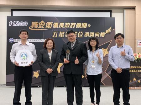 教育部致力推動學校職業安全衛生工作獲得肯定,在勞動部112年「政府機關推動職業安全衛生績效評核」榮獲優等獎,為中央各部會唯二得優等獎之機關,15日由資訊科技教育司李政軒司長出席頒獎典禮,並代表教育部領獎。