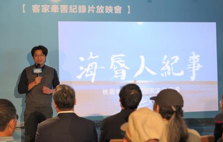客家委員會副主任委員周江杰23日前往桃園永安海螺文化體驗園區參加由客家公共傳播基金會舉辦的「客家牽罟紀錄片《海脣人紀事》放映會」,此紀錄片精心記錄海洋客家的族群樣貌,保存客家重要獨特的文化內涵,周副主委期藉由此紀錄片讓全臺民眾進一步認識海洋客家的生動面貌與客家文化的多元展現。