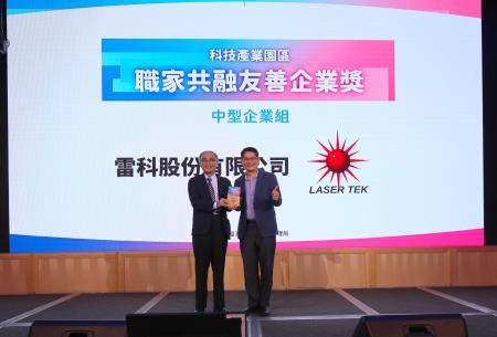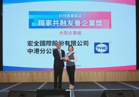 此外,首屆「職家共融友善企業獎」也在聯誼會中由楊局長頒發,感謝日月光電子、台灣佳能、宏全國際中港分公司、鼎新電腦台中分公司、宏利汽車、雷科公司等6家企業在推動「彈性工作」、「友善家庭」、「員工關懷」等層面提供多項優於法令的措施,期盼能激勵更多園區事業投入熱情與創意,共創幸福友善園區。