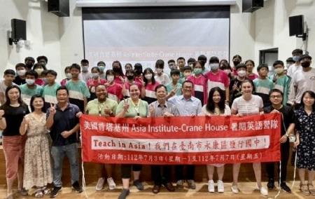 為提升我中小學學生英語能力,教育部與美國肯塔基州Asia Institute-Crane House(下稱AICH)機構首次合作,於本(112)年7月由AICH選派9名美國英語教師來臺進行3週英語夏令營活動,課程活潑生動,受到師生熱烈好評。