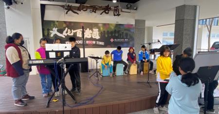兩校師生體驗原住民帽飾編織,將布農族、阿美族的山羊蹄或心形花圖案編織成頭帶,最後固定在遮陽帽上,就成美麗又有特色的實用帽子,學生們製作完成迫不及待戴上前往文化百老匯舞台體驗木箱鼓、電子琴與爵士鼓,簡單的節奏中,組成合奏曲目,現成舞台,體驗成為演出者的榮耀。最後前往台語友善空間,進入美學館古錐小夜市,有小吃攤、套圈圈、遊戲區及台語童謠歌唱,以沉浸式互動學習台語,讓語言學習變得有趣。學生們很驚艷原來市區有這麼多有趣又知性的文化場館資源,若有到市區會請家長也一起參觀!