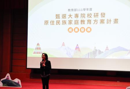 教育部今(2)日於國家圖書館國際會議廳舉辦「111學年度甄選大專校院研發原住民族家庭教育方案計畫」成果發表會,由實踐大學、國立空中大學、國立暨南國際大學、樹德科技大學、國立屏東大學及慈濟大學等6校共7組團隊展現方案執行成果,並邀請各縣市家庭教育中心及原民族家庭服務中心的工作人員出席觀摩,互相交流推展原住民族家庭教育的經驗。
