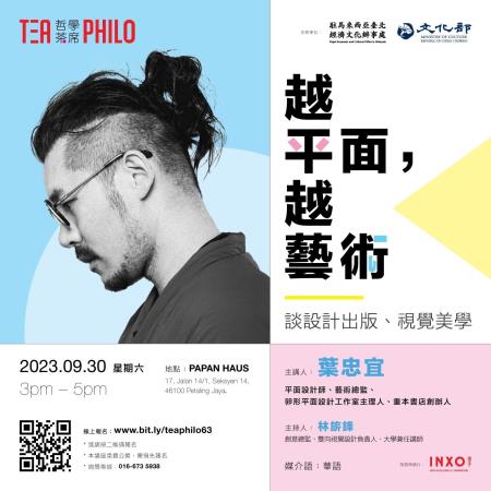 駐馬來西亞代表處文化組與雲手文創基金會合辦「哲學茶席」,今年最後一講將於9月30日邀請設計師葉忠宜以「越平面、越設計」為題,既談設計教育,也聊商業設計市場新的可能性。講座由赴臺灣求學、定居、創業的「雙向視覺設計」負責人林旂鋒主持,兩人將一同聊設計出版及視覺美學,如何讓美融入生活。