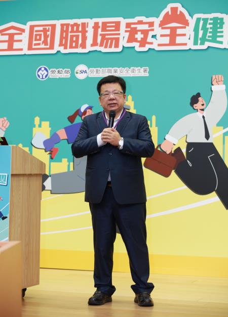 李俊俋政務次長表示,勞動部每年配合國際勞工組織(ILO)之倡導,將4月28日(世界職業安全衛生日)當週訂為「全國職場安全健康週」,提醒企業、工作者及社會大眾職場安全衛生與勞工健康的重要性。同時並指出,職業災害凸顯出生命的脆弱,職業安全與勞工健康是企業建立安全文化最根本的基石,唯有落實以人為本的核心價值,才能確保企業永續發展,除透過企業負責人支持、各級主管人員努力外,更須向下扎根使每一位員工都能參與實踐,並將安全健康意識拓展至所有承攬商,才能真正形塑企業安全健康文化。