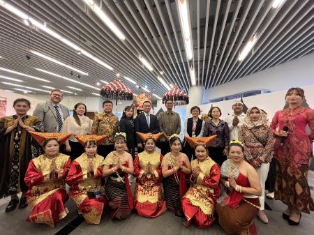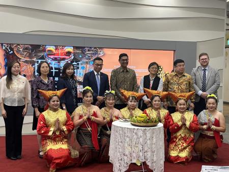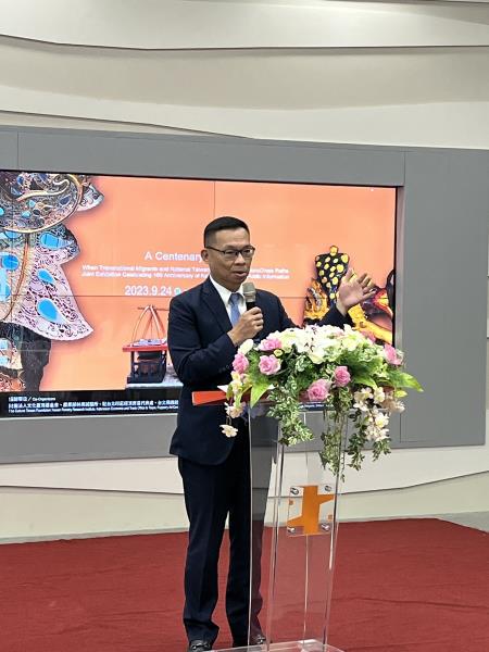 由財團法人臺灣博物館文教基金會、國立臺灣博物館與國立公共資訊圖書館共同主辦的「百年對話:跨國移動者與臺博館藏的相遇」國資圖建館百年聯合特展,自112年9月26日起假國資圖一樓展廳展出,展至113年3月17日止。今(26)日在國資圖1樓大廳辦理開幕記者會,由陳亞鈺(新住民第一代印尼籍)、王藝潔(新住民第二代)雙主持,活動由印尼和泰國的傳統舞蹈表演熱鬧展開,來自東南亞各國駐臺代表與新住民齊聚一堂,分享新住民第一代對家鄉濃厚的生命情感,及傳承在臺出生成長的新住民第二代文化故事。