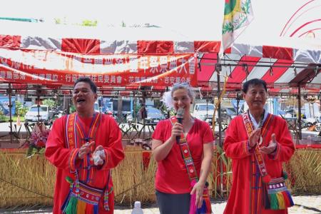 為推動台美原住民族文化交流,原民會夷將Icyang主委特別邀請美國在台協會(AIT)孫曉雅Sandra Oudkirk處長,參加花蓮縣吉安鄉阿美族娜荳蘭Natawran部落豐年祭,是AIT首任處長參加娜荳蘭部落豐年祭。