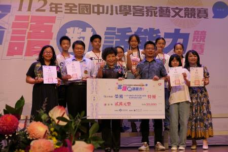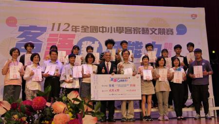 為提升客語使用率,客家委員會首次辦理「112年度全國中小學客語對話能力競賽」,以客語自然對話作為競賽方式,今(4)日於銘傳大學台北校區逸仙堂進行比賽,客委會副主任委員范佐銘親自前往頒獎給獲勝隊伍,並鼓勵年輕後生持續培養講客能力,傳承客家語言文化。