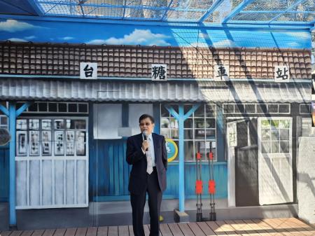 台糖總管理處於12日上午舉辦「森呼吸 糖廠意象好厝邊」活動,由台糖公司董事長楊明州親自主持,除在植樹節與鄰近學童一起種樹外,也將台糖珍藏的538號機車頭移至生產路旁,利用台糖土地優勢,興建糖廠意象廊道,結合新復刻的福利社與勝利號五分車網美車站,將臺南市東區又增添一處好吃、好玩的打卡點。