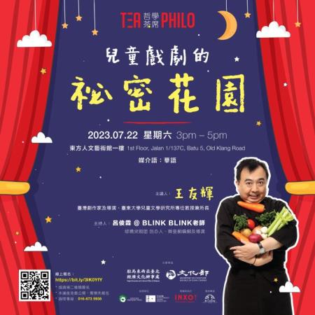 由駐馬來西亞臺北經濟文化辦事處文化組主辦,雲手文創基金會策劃執行的Tea Philo 哲學茶席, 7月22日將在吉隆坡東方人文藝術館舉辦第61場講座,邀請臺灣劇作家及導演王友輝,以「兒童戲劇的秘密花園」為題進行分享,馬來西亞綠精靈劇團創辦人呂俊霖擔任主持人。