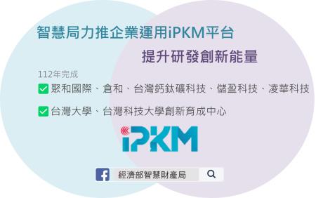 為協助我國中小企業技術研發及創新發展,智慧財產局建置「產業專利知識平台系統(iPKM)」整合產業所需智權知識,運用一站式平台提供多元化資訊與智慧化服務,以利企業掌握最新技術趨勢,並自107年起至112年完成162家企業輔導,希望藉由實地輔導,協助企業建立智權基礎觀念,加速其熟悉產業專利知識平台工具,深化企業專利布局與技術應用能力。