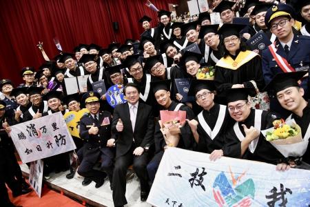 中央警察大學於13日上午舉辦「112年聯合畢業典禮」,總統蔡英文特別親臨主持,行政院副院長鄭文燦、內政部長林右昌也到場祝賀,共同以實際行動表達對警察教育工作的支持與重視,並期許畢業生帶著創新的科技偵查能量,成為國家打擊犯罪的強力新血。