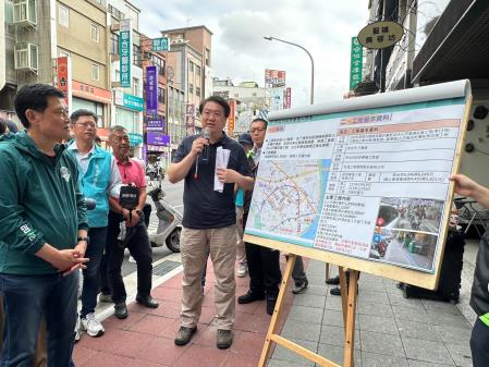 林右昌另指出,今日同時視察三重區正義北路(重陽路~重新路)人行環境改善,該路段鄰近捷運三重國小站,是當地通勤、通學、休憩需求極龐大的路段,人行道已建置使用約20年,路面老舊破損、電箱桿件及機汽車違停阻礙通行,且路口也未設置無障礙斜坡道,加上行穿線劃設太靠近路口,無法提供行人與駕駛者適當視距,影響通行安全,還有架高纜線雜亂影響市容等問題。