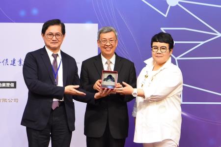 最後,陳院長再度肯定「台灣玉山科技協會」舉辦今日活動,邀請業界先進針對AI及Web3未來發展等議題進行專題演講,相信將能為所有與會者帶來豐富收穫,並祝福今日大會圓滿成功。隨後,「台灣玉山科技協會」童子賢理事長及蔡玉玲召集人共同致贈玉山水晶紙鎮予陳院長,並合影留念。