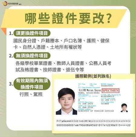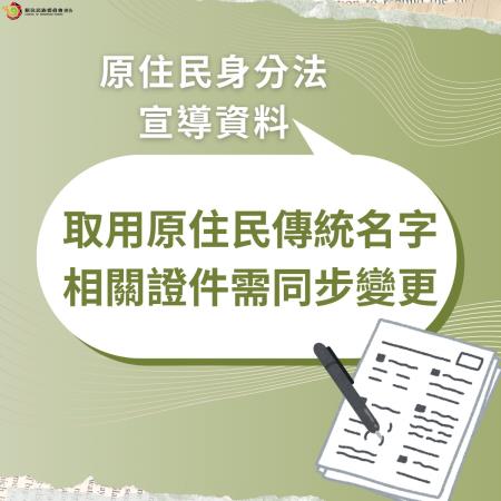 族人依規定申請登記、回復或並列傳統姓名時,相關身分證明文件也需同步辦理變更,例如身分證、戶口名簿等資料。