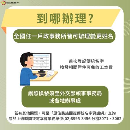 如有申請回復或登記傳統姓名需求,歡迎洽詢所在地戶政事務所了解詳細辦理方式。