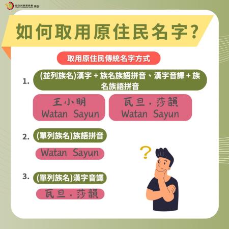 為了減輕族人辦理手續的負擔,原民會推動「原住民族登記傳統名字便民措施3年計畫(113年至115年)」,凡因登記或回復傳統名字而需換發證件,首次換發可免收規費,讓族人在辦理姓名登記時更加便利。
