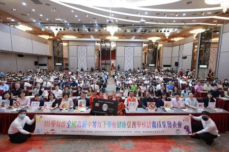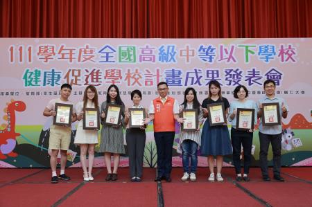 國教署說明,為鼓勵各縣市與學校積極推動健康促進學校,使守護學生健康的策略更落實於校園,本次發表會邀請22縣市教育局處展現推動成果,由現場來賓投票選出最佳人氣攤位,增添活絡的氣氛;並頒發「健康促進學校績優縣市」、「前後測成效評價成果報告」、「校園健康主播」、「健康體位績優學校」、「口腔保健績優學校」、「菸檳防制績優學校」、「菸檳防制績優學校」、「網紅就是你」以及「全民健保實境秀」等獎項,呈現豐碩成果。