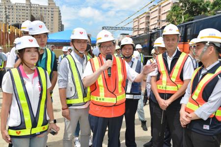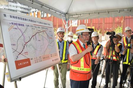 鄭副院長8月23日上午視察桃園鐵路地下化計畫平鎮車站及平鎮臨時站工程,對於桃園計畫各項先期臨時軌工程均已發包施工中,計畫總進度達27%;平鎮臨時站進度符合預期,可望於115年提前提供民眾鐵路的穩定服務,表達心慰。另外對於施工團隊於狹窄工區,且只能夜間施工,仍努力推動此一艱困工作,特別予以嘉勉,並叮囑施工團隊,要注意工程安全。