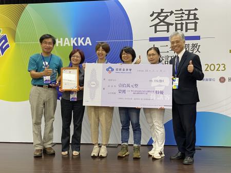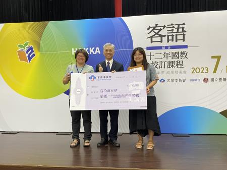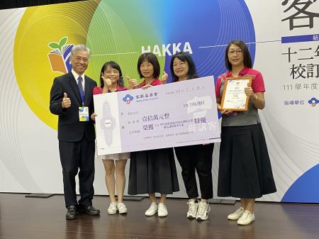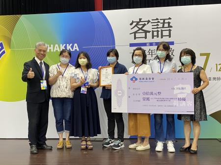 由客家委員會辦理之111學年度客語結合十二年國教校訂課程優良課程教學方案遴選,計8校獲得特優、16校獲得優等,於今(12)日在國立臺灣師範大學圖書館校區辦理「111學年客語結合十二年國教校訂課程」成果發表會暨頒獎典禮,客委會范副主任委員佐銘除恭喜獲獎的學校單位,也期許大家繼續為傳承客家語言文化貢獻一己之力。