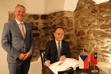 文化部長史哲12日起赴歐洲展開首次出訪行程,預計拜訪捷克、荷蘭與法國重要藝文機構、會晤政治界及文化界等重要人士,並主持臺法文化獎頒獎典禮。首站到訪捷克特爾奇市(Telč),在駐捷克代表處大使柯良叡陪同下,會晤捷克參議長韋德齊(Miloš Vystrčil)、維索吉納省長施瑞克(Vítězslav Schrek)、特爾奇市長布爾特尼克(Vladimír Brtník)。史哲表示,期盼藉此次出訪,深化臺灣與各國的文化交流,以民主多元與文化之力緊繫彼此的友誼。史哲登上特爾奇鐘塔鳥瞰整座城市後,在市政廳留言本上寫下「這的美麗,讓我們認識真的捷克,民主、多元,願捷臺永遠美好」。