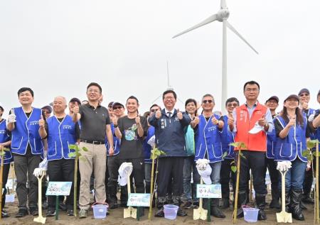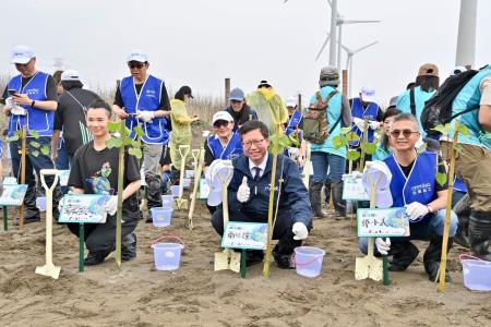 鄭副院長強調,他擔任桃園市長時就有推出「桃園濱海綠色廊道造林計畫」。他說,海岸植樹造林不只有防風、定砂、保護海岸的功能,同時具有自然碳匯的價值,不只保護地球,更可成為維護生物多樣性的棲地。而本次植樹活動所栽植的樹種都是選擇抗風害、抗鹽害能力較強的原生樹種,彰顯臺灣原生物種的價值。