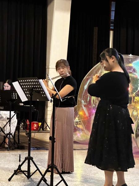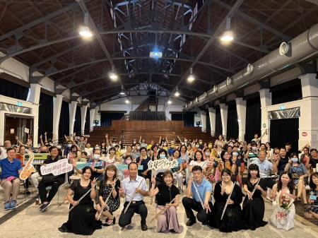 8月26日下午登場的「臺灣風情畫音樂會」,特別邀請花蓮知名長笛音樂家及芳療師曾淑芳擔綱,陳小玲鋼琴伴奏,搭配綺想長笛室內樂團與社大快樂吹長笛班共同演出,曾老師表示她雖是客家人不過從小接觸台語環境,因此可用流利台語介紹各首曲目,當天活動將音樂與食物結合,同時打開民眾聽覺與味覺。曾老師以一首法國香頌樂曲開場,介紹法國留學經驗,此時讓民眾享用法國經典可頌麵包及臺灣蔥花捲,也將民眾帶往浪漫之都。接著將場景拉回臺灣,以長笛結合鋼琴演奏丟丟銅、淡水暮色、快樂出帆人、白牡丹、望春風等多首經典台語歌曲,同時曾老師也與團員們一起演出,用音符演繹臺灣風土人情,民眾此時享用綴著牡丹花的新鮮木瓜及水蜜桃茶,感受台語音樂之美與芬芳。這天曾淑芳老師全程使用台語解構每首民謠的深層文化涵義,將台語自然地融入音樂中,現場百位民眾則透過音樂體會台語文化的情感和熱情,共同感受音樂的魅力。