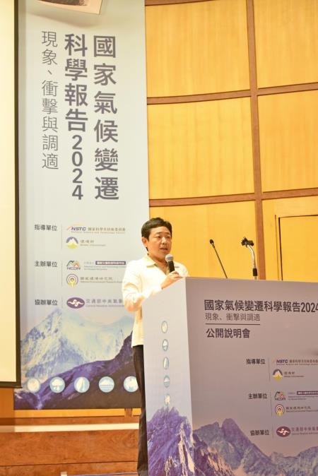 《國家氣候變遷科學報告2024:現象、衝擊與調適》由中央研究院環境變遷研究中心特聘研究員許晃雄以及中央大學水文與海洋研究所教授李明旭擔任主編。兩位主編於會中說明科學報告費時1年半的編撰流程以及科學關鍵重點。