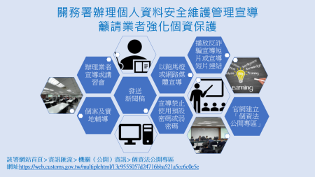 關務署說明,為使報關業者瞭解相關規定及如何強化個資防護措施,該署於113年3月1日舉辦「報關業、保稅倉庫及物流中心個人資料檔案安全維護管理辦法宣導講習」,邀請國家資通安全研究院黃研究員文彥擔任講座,針對個人資料保護法及安維辦法規定之個人資料與電子資料介紹、電子資料防護作為及業者應採取之個資相關系統防護基準加以說明。另為擴大舉辦效益及方便業者出席,採取現場實體與遠端視訊同步方式,計有近300家業者踴躍參加,講習互動順利圓滿落幕,參加業者均收穫滿滿,就提升個資保護應採取之相關資訊安全措施有更深刻認識,有助維護納稅義務人個資安全。