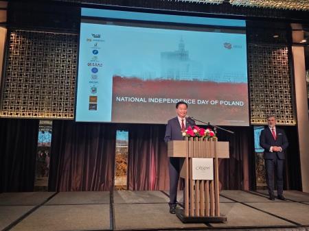 波蘭臺北辦事處處長高則叡(Cyryl Kozaczewski)致詞時表示,波蘭曾經歷外國占領及共產政權高壓統治,如今波蘭擺脫帝國主義、納粹及共產政權,堅定支持擁抱民主。波蘭肯定台灣對國際經濟及民主的貢獻,隨著歐盟於印太地區影響力的增長,台波關係也持續深化。最後高處長邀請吳部長與現場來賓一同舉杯祝酒。