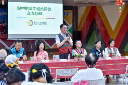 原民會夷將Icyang主委於10日至桃園市中壢區文化健康站關心在地原住民族長者,並公布112年度全國再新增22處文化健康站,全國總計設置數達503站,每日可提供約1萬5,600名照顧服務。