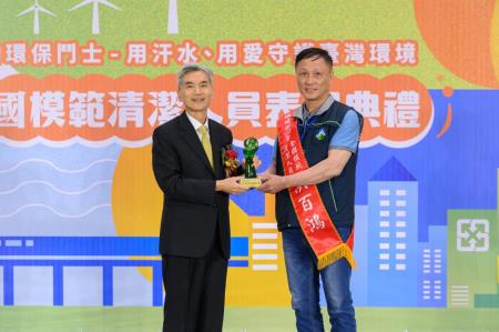 薛部長說,環境保護的工作倚賴全國清潔隊員在工作崗位上發揮專業,模範清潔隊員們是從全國三萬多名清潔隊員中脫穎而出,也因為清潔隊員們的付出,民眾居家生活品質日益美好。