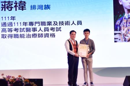 為鼓勵原住民在專業領域上追求卓越,原住民族委員會每年獎勵原住民傑出專門人才,今年有1,509人獲獎,頒發獎勵金總額達新臺幣2,744萬餘元,7日原民會於臺北圓山大飯店舉辦「112年度原住民族專門人才頒獎典禮」,由原民會夷將‧拔路兒Icyang‧Parod主委親自頒獎,公開表揚獲獎者。