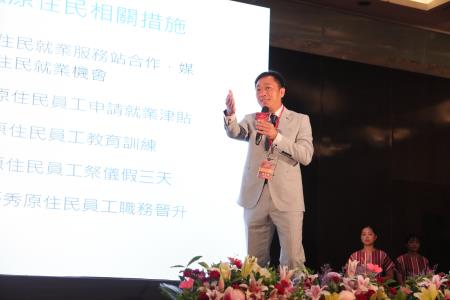 原住民族委員會17日於台北君悅酒店舉辦「114年超額進用原住民族機關(構)及廠商頒獎典禮」,由曾智勇 Ljaucu·Zingrur 主任委員親自頒獎,表彰並感謝出席典禮的26個機關(構),積極進用原住民族員工,落實保障就業的政策目標。