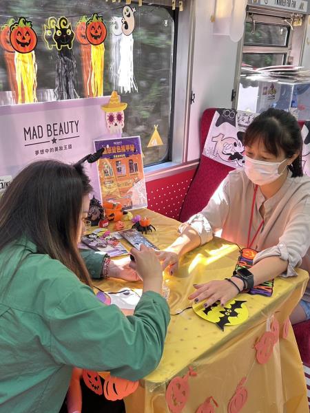 另為迎接萬聖佳節,「環島之星夢想號」即日起至10月31日舉辦快閃萬聖搞怪派對,限定日期於礁溪-瑞穗區段更提供搗蛋DIY體驗!在全臺唯一的火車萬聖市集,有女巫藥水、南瓜那提等萬聖特調飲品,及應景的巫婆手指餅乾等搞怪點心,更首度安排萬聖指甲彩繪服務,在你的指尖上留下迷人風采。