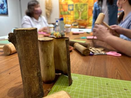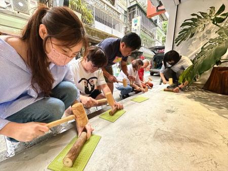 永康街騎樓傳來這樣的聲音,鄰居紛紛好奇探頭,原來是有一群人在體驗過去阿美族的樹皮衣製作,從把「構樹」木敲鬆到樹皮取下,再敲打到鬆軟能親膚。原來構樹不只能應用在服飾,還能當果實和野菜食用,是過去原住民的生活智慧。
