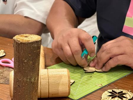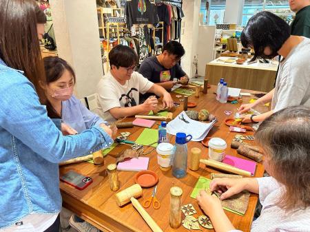 製作過程原來這麼不簡單,如果太使力會穿到破衣服..,如果沒有浸泡過又敲不下來,也不能靠蠻力,真是需要體力和技術,今天不但體驗樹皮衣的製作過程,還將它做成項鍊和掛飾,成為今天賣力過程的回憶。