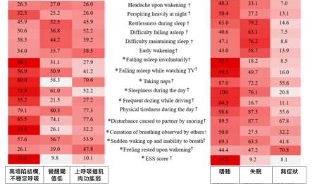 鄭醫師團隊分析臺灣不同年齡層睡眠呼吸中止症病人之病理成因及症狀,發現三種常見於台灣人的病因特徵,高上呼吸道結構塌陷性併呼吸模式不穩定的患者容易嗜睡,覺醒閾值低常伴隨失眠症狀,上呼吸道肌肉功能弱的患者則無特殊症狀。高齡長者的症狀以失眠與無症狀者較多,病因則偏向呼吸模式不穩定。因此,長者可能因沒有明顯的嗜睡、打鼾等症狀,而容易被忽略有睡眠呼吸中止症的發生。對於病理特徵偏向呼吸模式不穩定的長者,建議可以選擇能穩定呼吸模式的內科藥物給予治療。