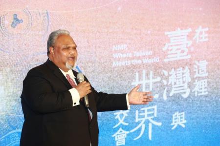 今(16)日在國立臺灣博物館南門園區舉辦史前館重新開館及「518國際博物館日」啟動記者會,文化部長史哲、帛琉大使伉儷歐儒侃(David Adams Orrukem)與夫人Janet Orrukem、夏威夷比夏博物館文化顧問Marques Marzan、國立故宮博物院長蕭宗煌、國立臺灣史前文化博物館長王長華、舒米恩,以及全臺公私立博物館、地方文化館及相關學界代表出席。