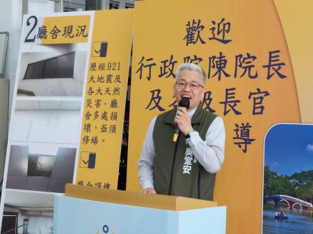 吳堂安表示,為完善消防人員執勤環境,政府不僅在人力、車輛及裝備器材上給予支持,更要改善休息備勤環境,讓消防人員有更佳的狀態出勤,因此內政部向行政院提報總經費約2億8,000萬元的計畫,將一次性補助全國消防分隊改善老舊廳舍所造成的問題,包含寢室空間整修翻新、衛浴設備更新及改善廳舍漏水或壁癌等問題,讓老舊廳舍內裝現代化,增加空間使用效率,使消防人員能專心辦公,提升為民服務品質。
