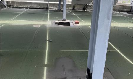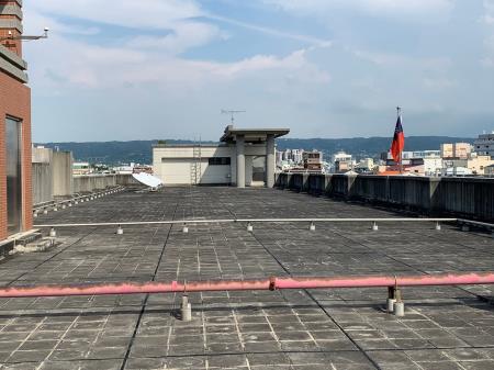 以國立花蓮高商為例,該校人文館於民國77年啟用,屋頂原有防水毯破損嚴重,導致雨水滲漏流竄,且迎風面的北側樓梯因長年濕氣使內部鋼筋生繡腐蝕,其周圍混凝土產生裂縫剝離、水泥崩落。經補助計畫,打除頂樓破損防水層至結構體及樓梯間剝落的水泥塊,進行落水孔疏通,重新舖設混凝土及防水漆,並以高壓灌注防水工法施作,改善雨水滲入問題。
