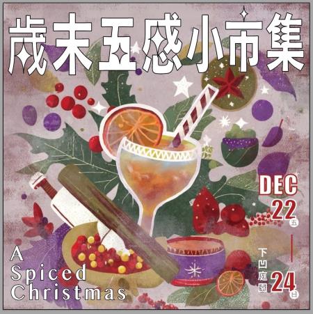 在東方或西方傳統中,感恩、團聚都是歲末年終時人們的重要大事。而不論是在華人冬令進補的傳統,或是歐美國家飲用日紅酒的傳統,香料(spice)都佔了一席之地。為呼應這樣的傳統,文化部所屬國立臺灣美術館今年度歲末推出「A Spiced Christmas-歲末五感小市集」系列活動,以國美館典藏賀蕙芝作品〈羊肉爐與槓子頭〉及〈感恩祭〉為發想,膳食與香料的運用為主題,12月22日(五)至24日(日)於國美館戶外的下凹庭園推出五感闖關活動。12月24日更有聖誕沙龍及快閃音樂會,歡迎有興趣的朋友到國美館,體驗一個馨香聖誕。
