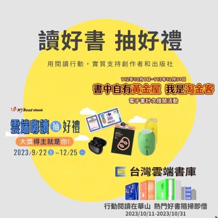 此外,凌網科技HyRead電子書更加碼推出「雲端嗨讀抽好禮」及「書中自有黃金屋 我是淘金客」兩項數位閱讀集點活動,完成指定閱讀任務即有機會獲得電子書閱讀器、Apple Watch、電子書紅利點數等多項好禮。