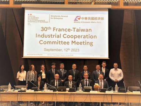過去三年因疫情僅能以視訊會議進行,今(2023)年第30屆臺法工業合作會議恢復雙方每年的實體交流,於9月12日下午在法國財經部舉行,由經濟部工業局連局長錦漳與法國企業總局局長Mr. Courbe共同主持。會中雙方除分享彼此的重要產業政策外,並討論半導體、新型態電動運輸、以及淨零減排等領域之合作議題,氣氛熱絡並針對後續產業合作達到多項共識,會議圓滿結束。