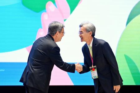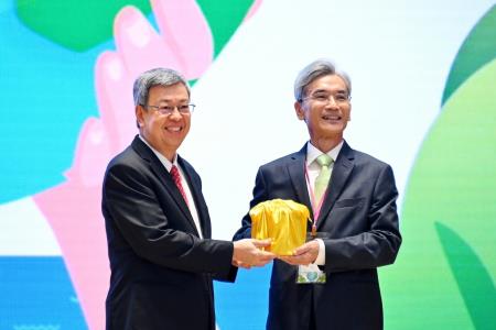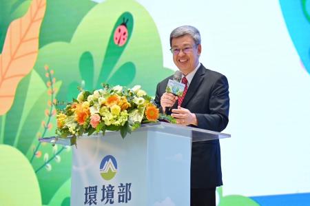 陳院長致詞時指出,今日是環境部成立的大日子,也是臺灣環境永續發展的重要里程碑,為因應國際淨零排放趨勢及全球環境變遷,並整合事權,以系統性方式處理氣候變遷、資源循環、化學物質管理、環境品質管理及強化環境科研等議題,政府透過組織改造,將環保署升格為環境部,期能運用更充足的資源,強化環境韌性,打造更堅韌的永續臺灣。院長強調,除了環境部外,衛生福利部、經濟部、國家發展委員會等部會皆與推動臺灣環境永續發展任務相關,因此應持續透過跨部會合作,以及與民間團體共同協力,獲得最佳成果。