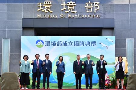陳院長表示,有永續環境才有永續臺灣,中央與地方、政府與民間應共同努力、攜手合作,才能使臺灣走得更穩健長遠,並打造更堅韌、美滿及幸福的社會。期盼藉由今日環境部的成立,讓臺灣環境能夠達到永續發展的目標,進而成為亞洲地區環境保護、氣候變遷因應及碳費管理等方面的學習楷模,並讓世代子孫皆能生活在這塊堅韌溫暖的臺灣土地上。