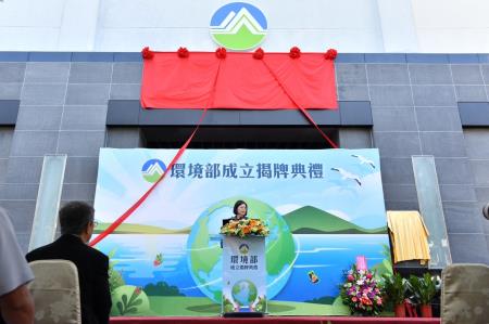 行政院長陳建仁22日出席「環境部揭牌暨部長布達典禮」時表示,為因應國際淨零排放趨勢及全球環境變遷,並整合事權,打造更堅韌的永續臺灣,行政院環境保護署今日正式升格為環境部,並由國立中興大學前校長薛富盛接任首任部長。院長指出,環境部未來將肩負加速推動碳定價、《資源循環促進法》修法及建立環境智庫等三大重點任務,期許薛部長能以其豐富歷練,與社會各界廣泛溝通、取得共識,積極因應氣候變遷挑戰,為臺灣永續發展做出最大貢獻。