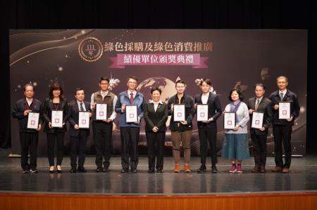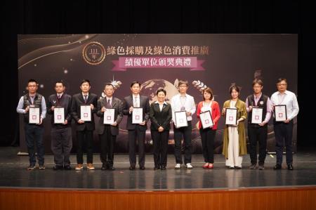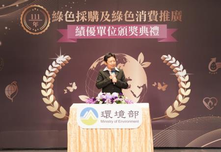 環境部為表揚機關及民間單位對綠色採購的支持及努力,於13日辦理「111年綠色採購及綠色消費推廣績優單位頒獎典禮」,由施文真次長親自頒獎表揚111年之11處機關綠色採購評核特優單位及143家民間企業及團體綠色採購績優單位。透過公開表揚方式,肯定各界落實綠色採購之努力,提高綠色消費量能,使機關與民間單位互相觀摩交流,持續支持綠色採購,並推廣其他單位加入綠色採購行列。