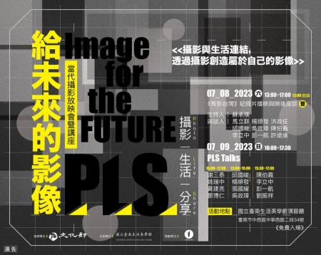 文化部所屬國立臺南生活美學館為推廣臺灣當代攝影,於112年7月8日、9日辦理「給未來的影像:當代攝影放映會暨講座」,期望透過放映會暨講座注入創新的視覺文化元素,藉由攝影創作者、紀錄片導演與民眾共同對話,激發多元的思考觀點與跨域交流的可能。活動於本館演藝廳舉行,歡迎對攝影有興趣的民眾踴躍參與。
