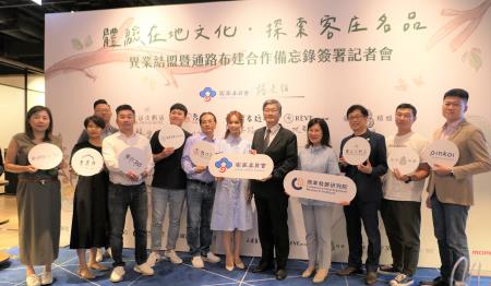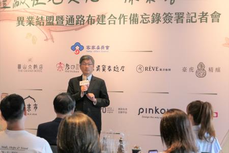為推廣客庄特色產業,形塑客庄在地特色產業品牌,客家委員會今(22)日於蔦屋書店松山店辦理「異業結盟暨通路布建合作備忘錄簽署記者會」,客委會主任委員楊長鎮期望藉由8個客庄在地品牌結合不同領域的指標性廠商,透過上下游合作模式,讓客庄在地品牌能夠達到自主管理、永續經營的目標,並藉此提升客庄社區經濟,也讓客家飲食文化真正走進大眾的日常生活。